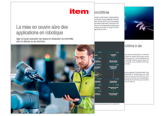 De l’idée de départ jusqu’à la déclaration de conformité selon la directive sur les machines, en passant par l’évaluation des risques : dans ce guide pratique, vous trouverez une présentation détaillée des normes essentielles et une assistance concrète pour la mise en œuvre d’applications en robotique sûres dans votre entreprise. Renseignez-vous sur les connaissances de base concernant l’analyse des risques et les conditions particulières de la collaboration homme-robot.
